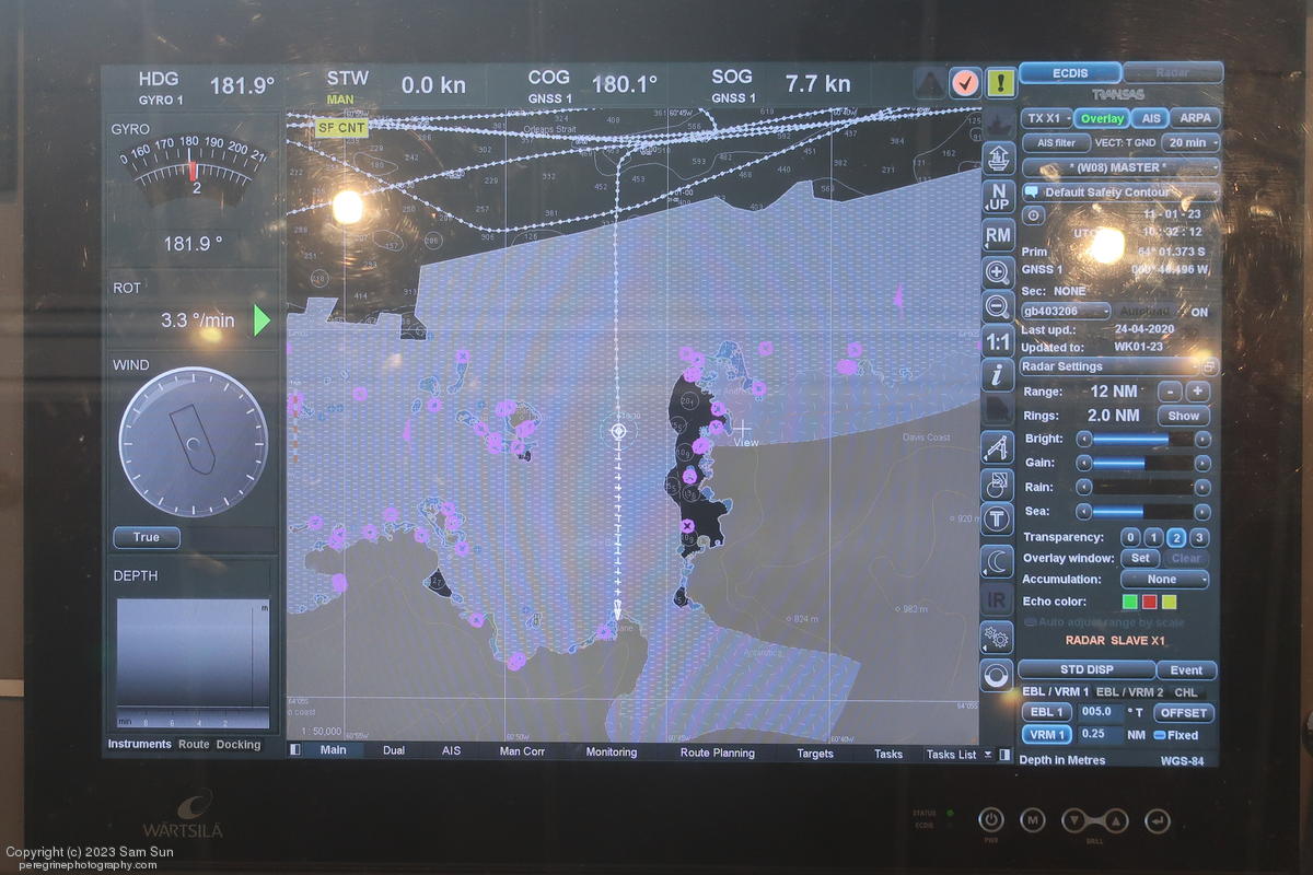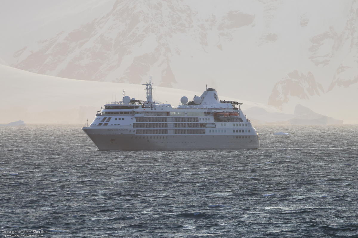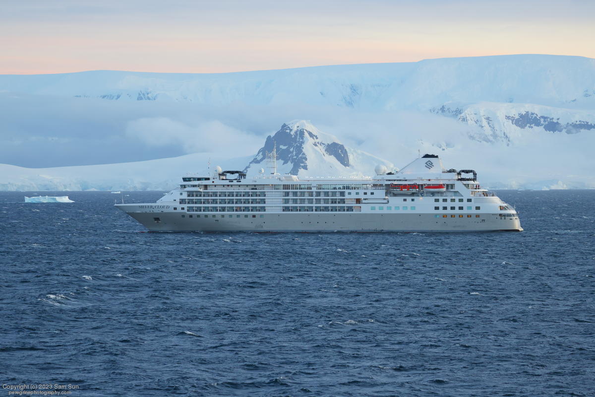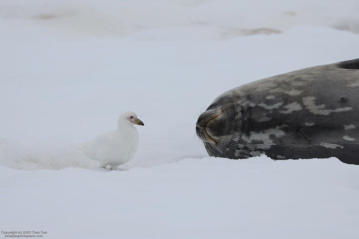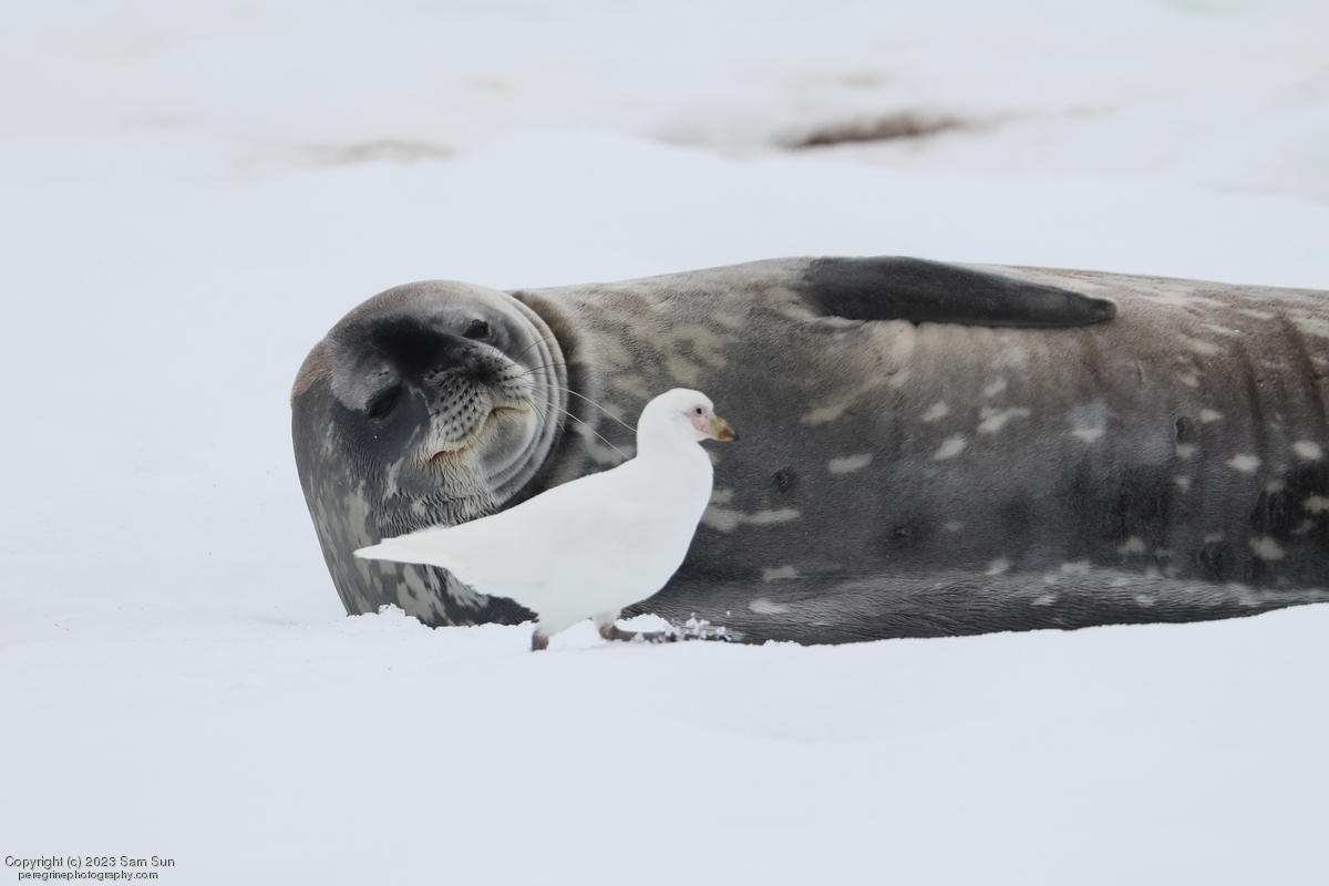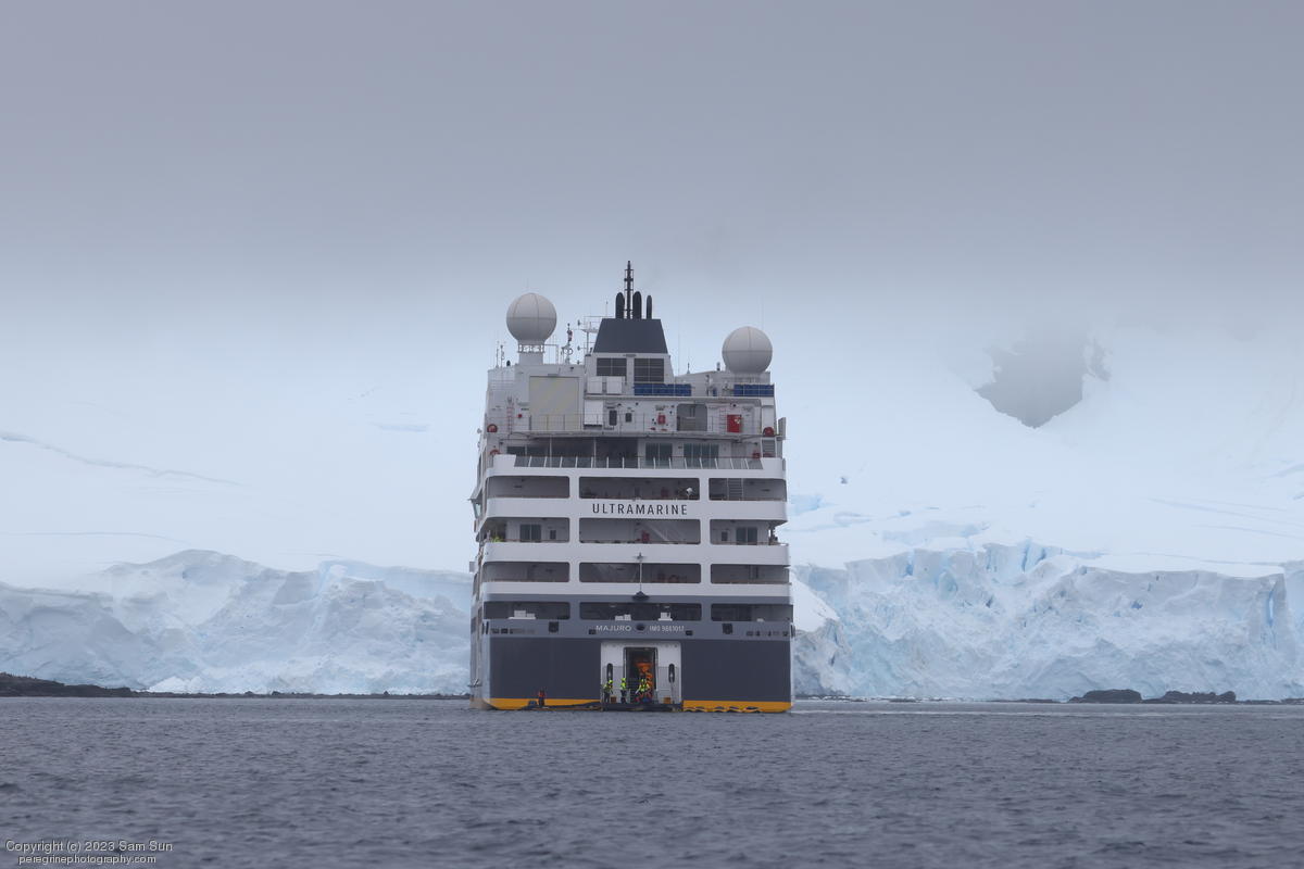 We backtracked a bit to the northeast overnight to stay with better weather. In the morning, we did a paddling excursion and came across a leopard seal.