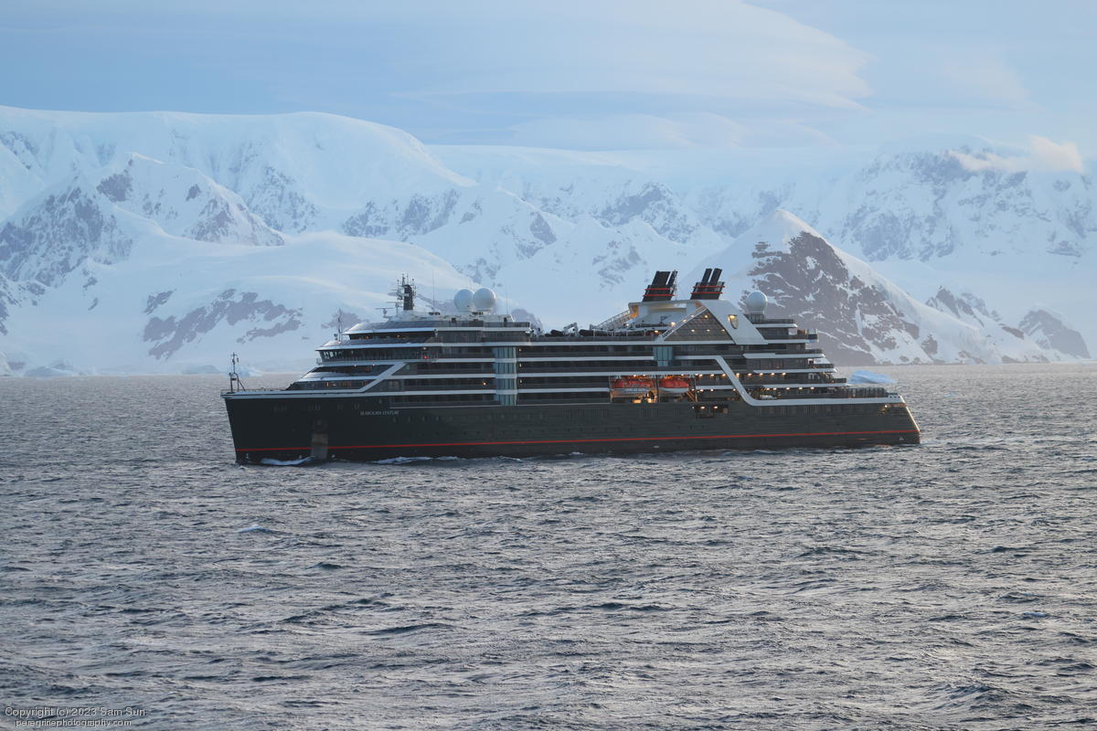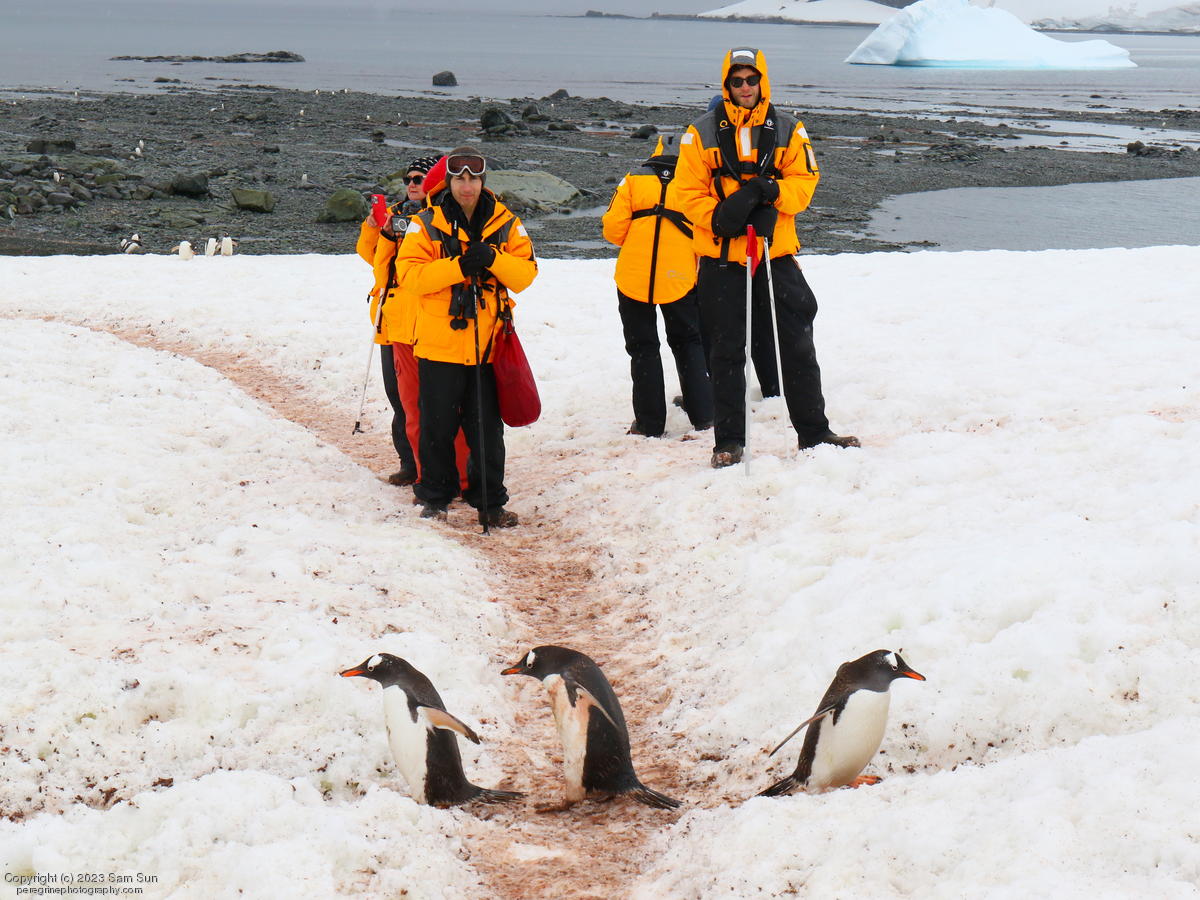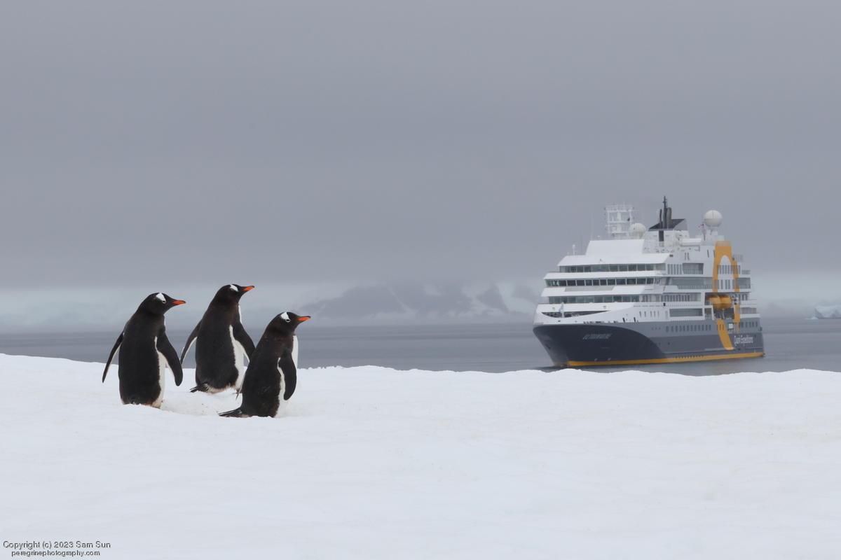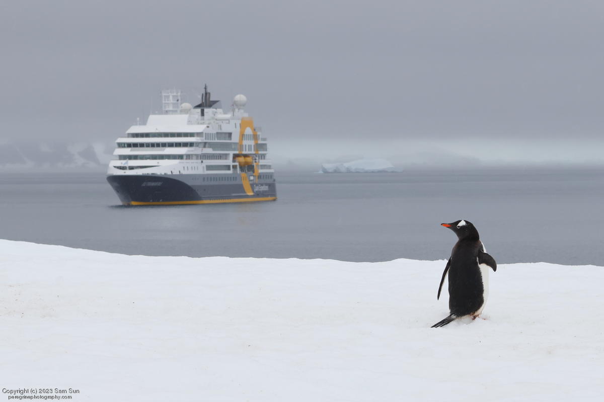 D'Hainaut Island, formerly known as Bombay Island, hosts a colony of gentoo penguins. After hiking around the island, we had an up-close encounter with some humpback whales while zodiac cruising.
