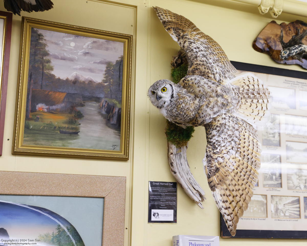 The Raptors (aka Pacific Northwest Raptors) is a raptor exhibition facility that also focuses on their use in wildlife management (e.g. discouraging birds on airports). Of course I had to drop by for a visit as soon as I found out about them. They had a great free-flight demonstration. Nearby was the Hands of Man Museum, which is best summarized as an eclectic private natural history and artifact collection.