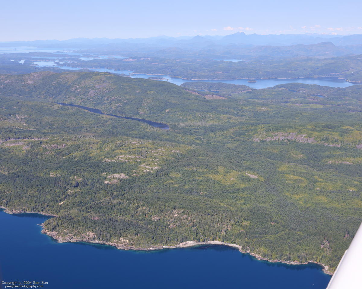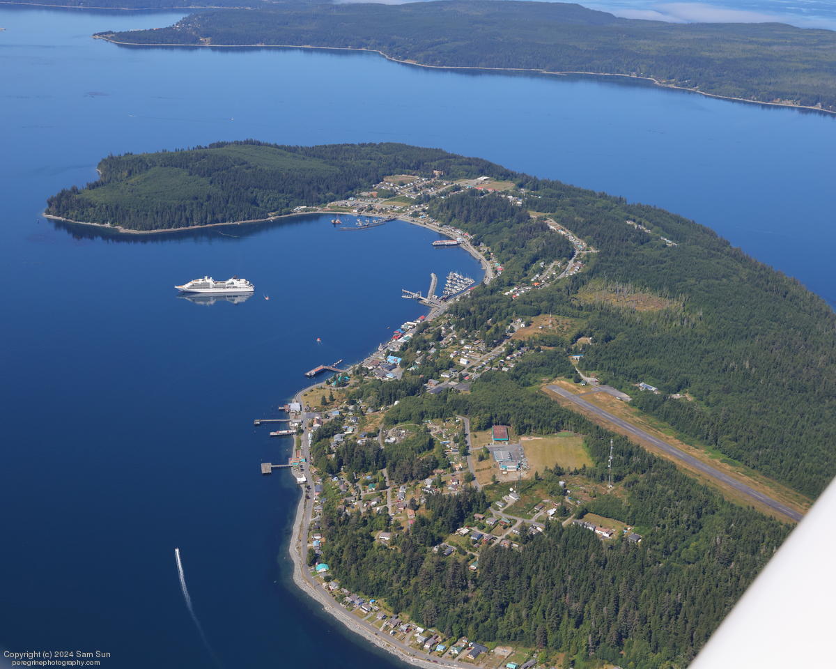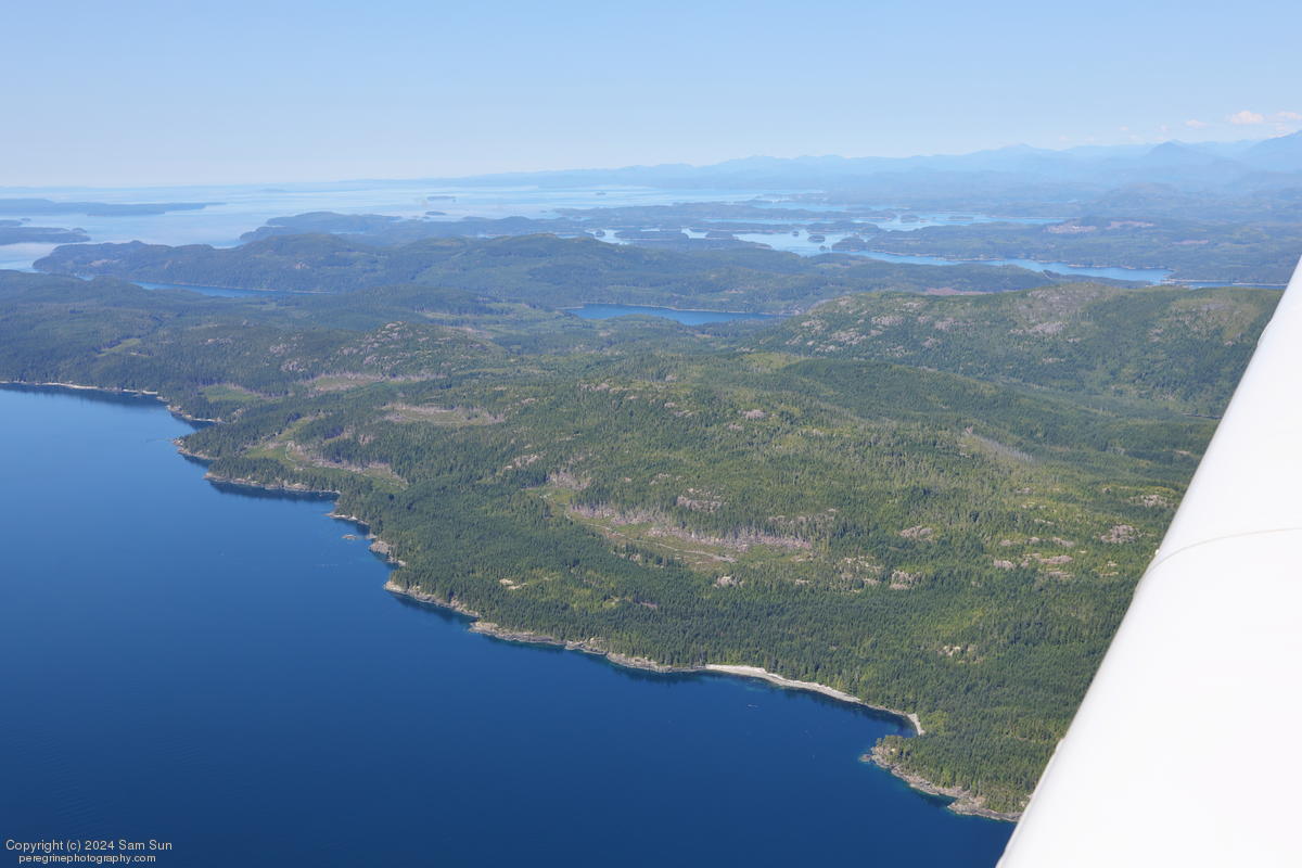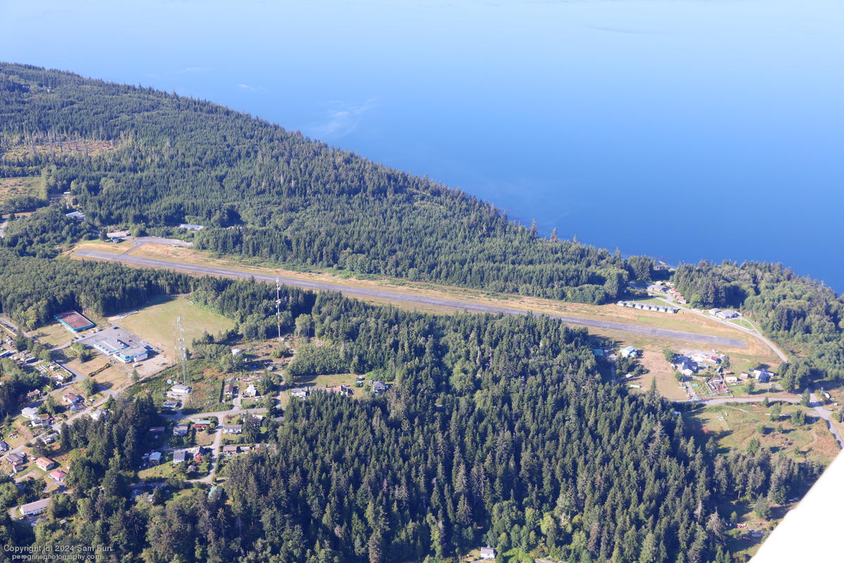 The morning started wet and gloomy, but turned into a beautiful day as I headed north along the east coast of Vancouver Island to Port Hardy. I tied down and got fueled (expensive, as they had to truck in fuel from Montana due to a refinery outage in Alberta), but on a suggestion of the airport staff, took off again for a scenic flight around Hanson Island to spot some whales.