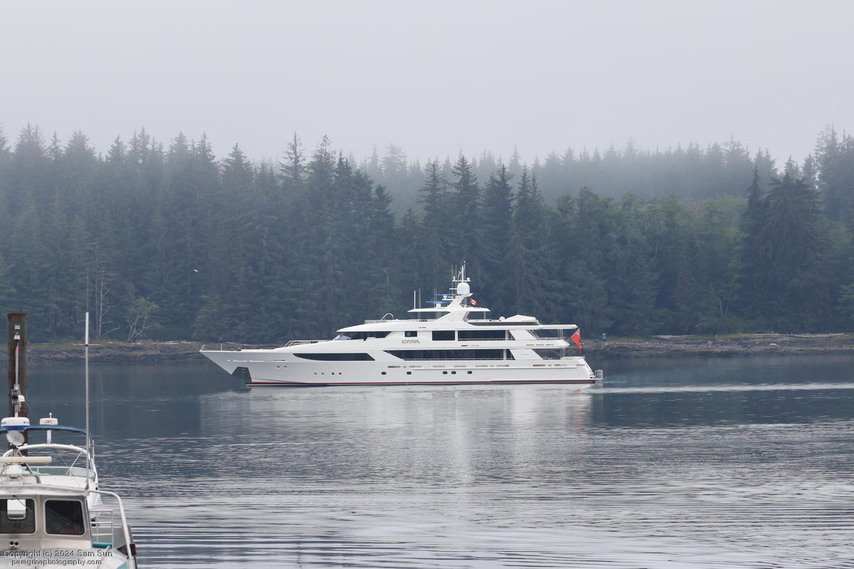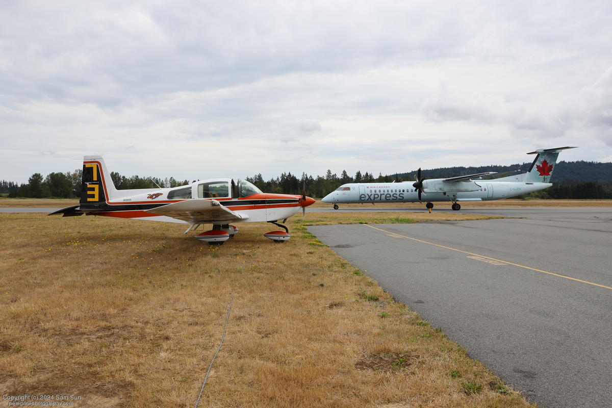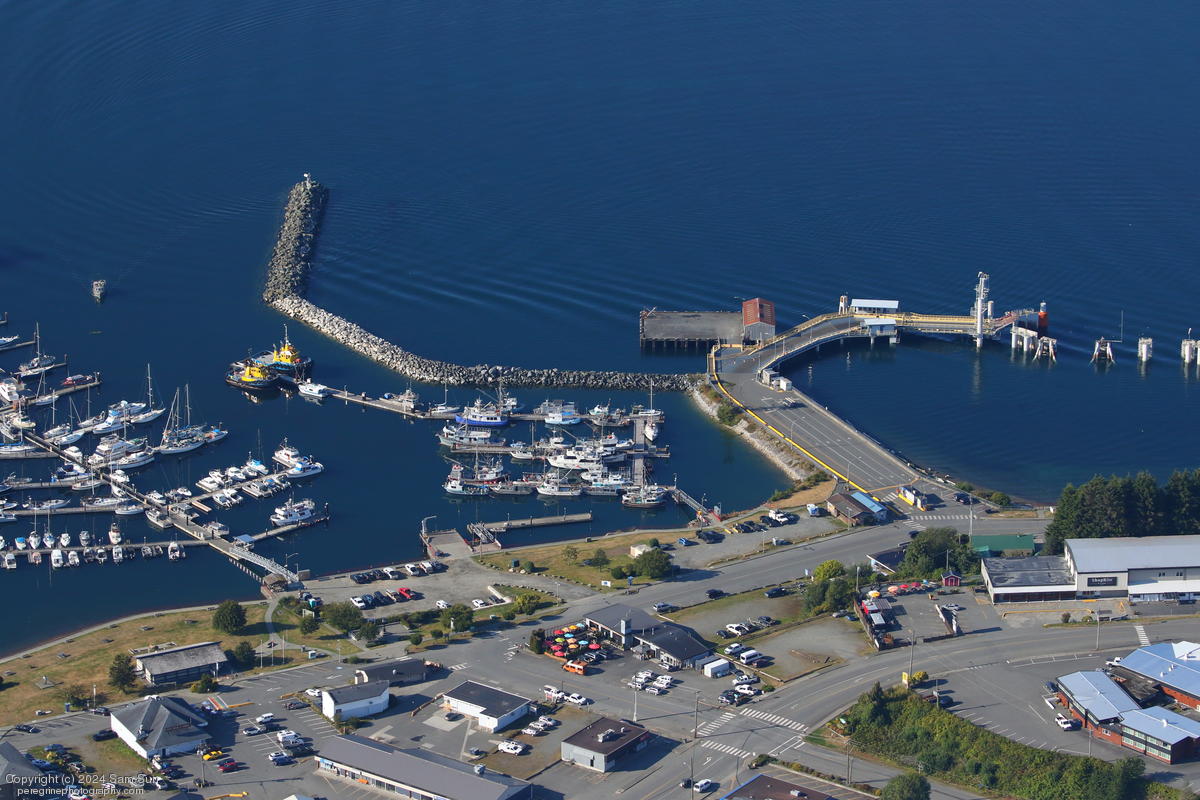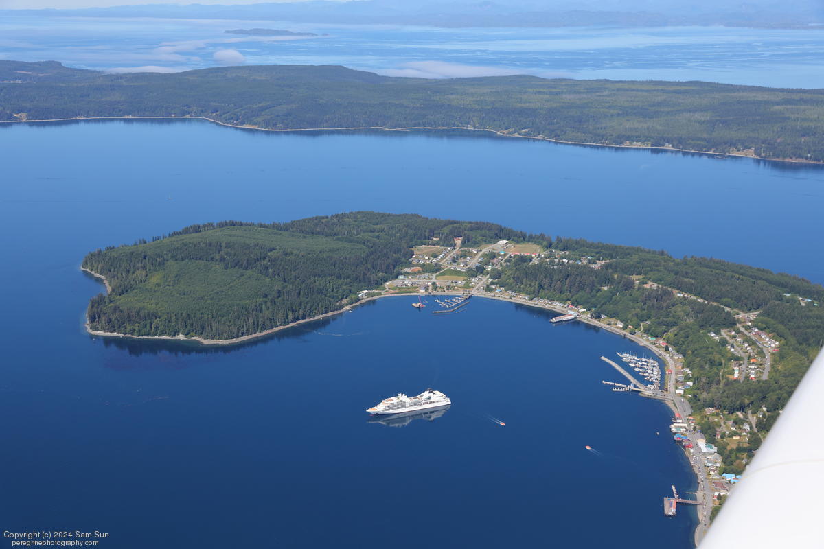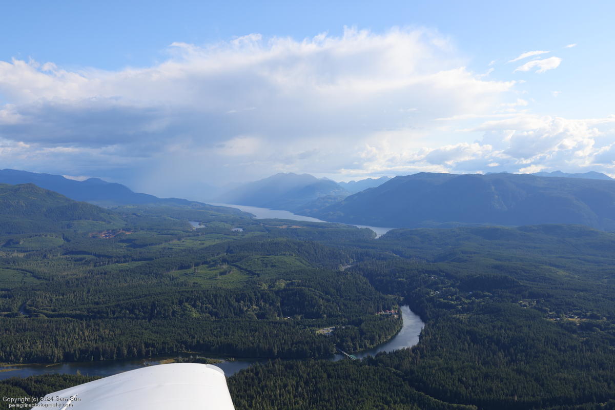 The morning started wet and gloomy, but turned into a beautiful day as I headed north along the east coast of Vancouver Island to Port Hardy. I tied down and got fueled (expensive, as they had to truck in fuel from Montana due to a refinery outage in Alberta), but on a suggestion of the airport staff, took off again for a scenic flight around Hanson Island to spot some whales.