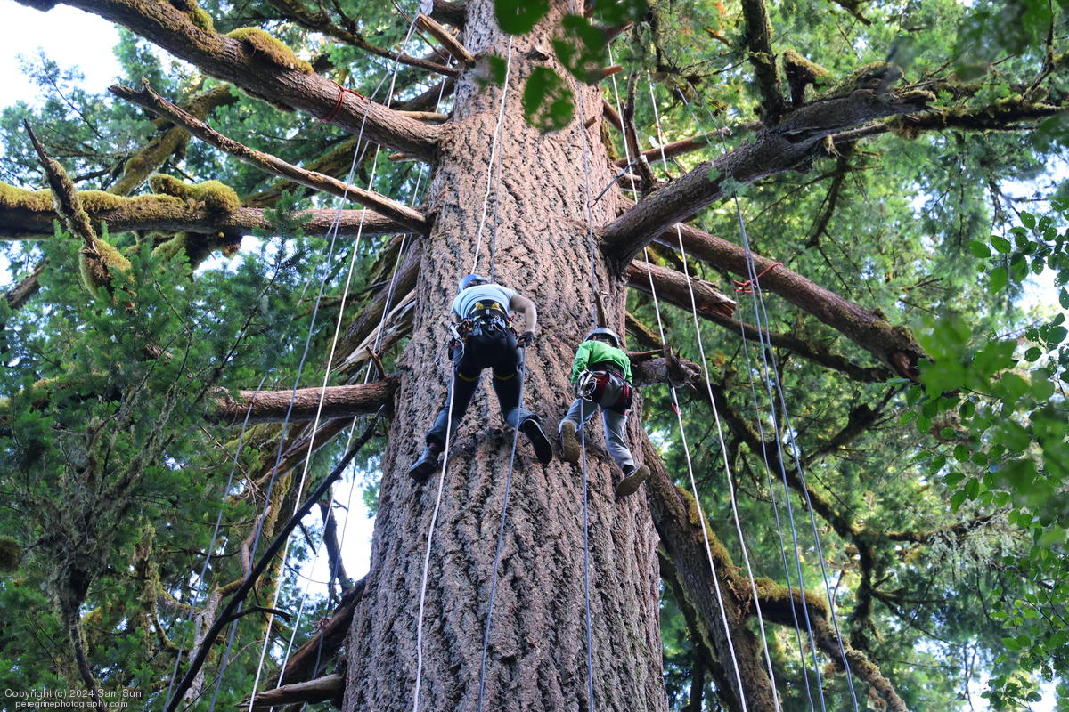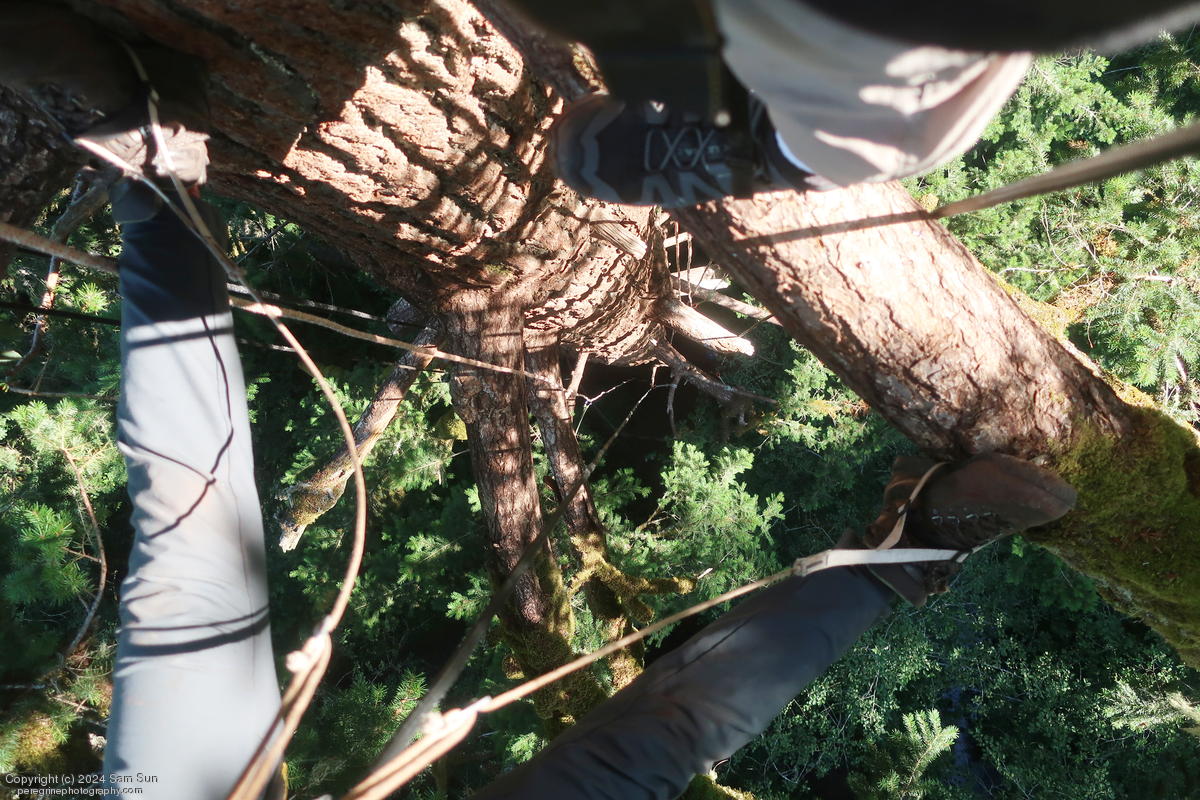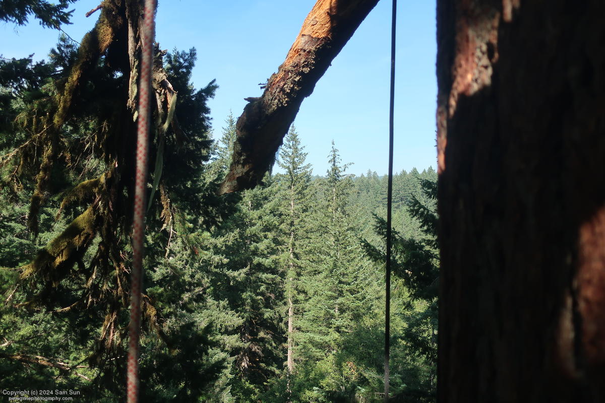I joined a friend and his son for a night of camping at Silver Falls State Park, and we did a guided tree climbing experience. I made it about 200 feet up a 250-300 foot tree.